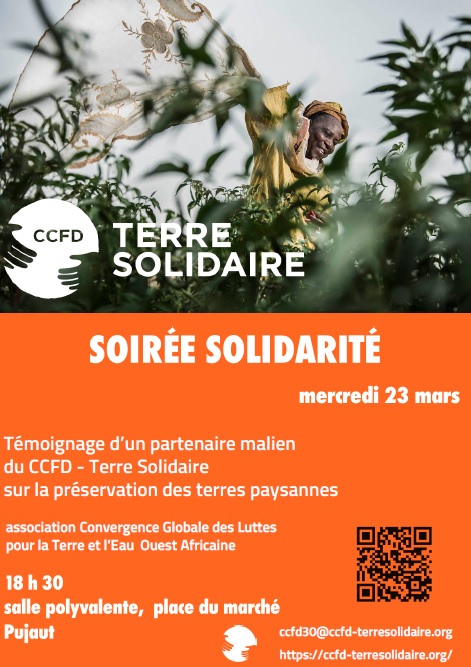 « Juriste de formation mais paysan de profession », Massa Koné porte plusieurs casquettes, il sera présent dans notre Région Languedoc Roussillon Vaucluse en tant que porte parole de la CGL TE Ouest Africaine – la Convergence globale des luttes pour la Terre et l’Eau Ouest Afrique, il est aussi secrétaire général de l’UACDDDD (Union des Associations et Coalitions pour le Développement et la Défense des Droits de plus Démunis) qui fédère plus de 400 organisations paysannes et mouvements citoyens au Mali, porte-parole de la Convergence malienne contre les accaparements de terre, et du mouvement No Vox Afrique.
