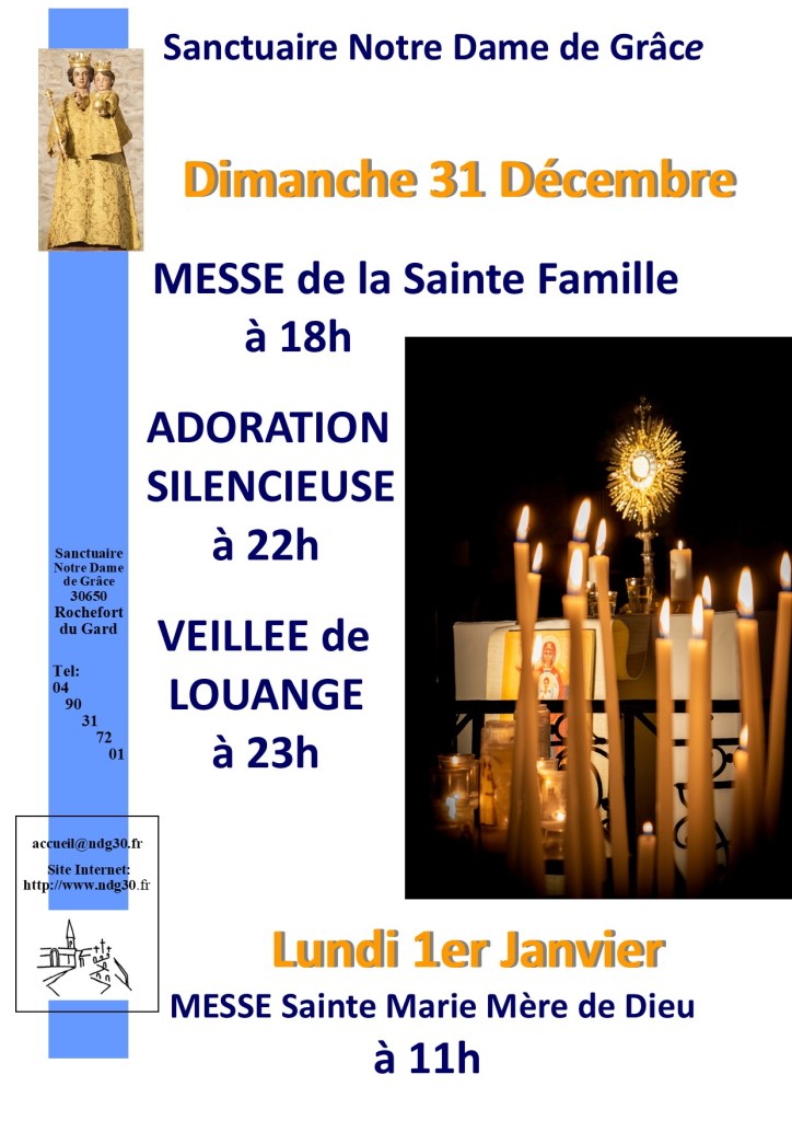 Soirée du 31 Décembre au Sanctuaire Notre Dame de Grâce : Messe, Adoration et Veillée de louange !