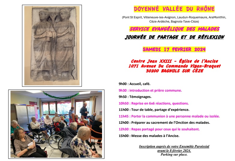 SERVICE EVANGÉLIQUE DES MALADES : journée de partage et de réflexion le Samedi 17 Février à Bagnols sur Cèze