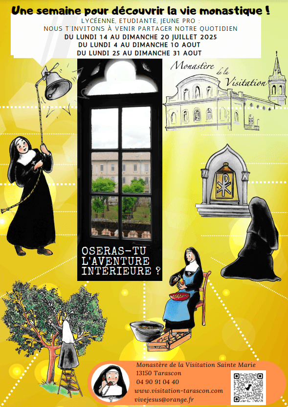 Voici des échos de ce qui s’est vécu en 2024 : https://www.visitation-tarascon.com/echos-des-sejours-decouverte-de-la-vie-monastique/